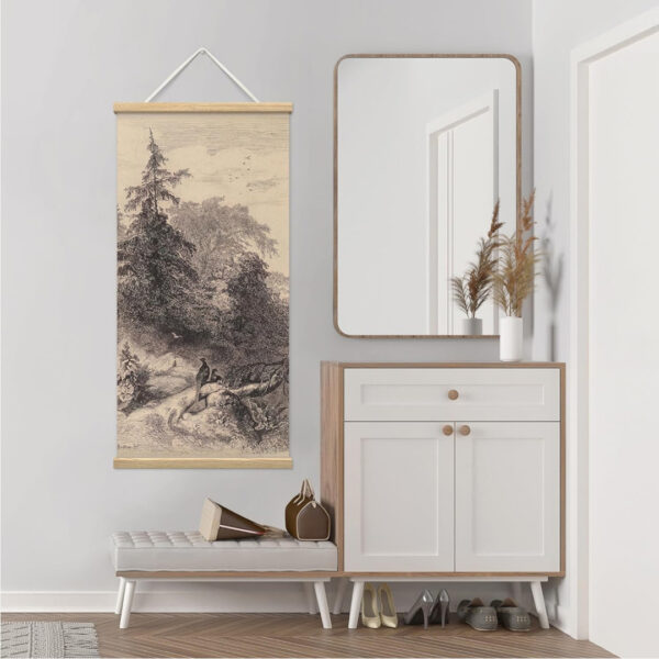 •Natural wood poster hangers with full color print •UV printed poster graphic •Top and bottom hangers snap together using strong magnets •Easy to hang from a single nail