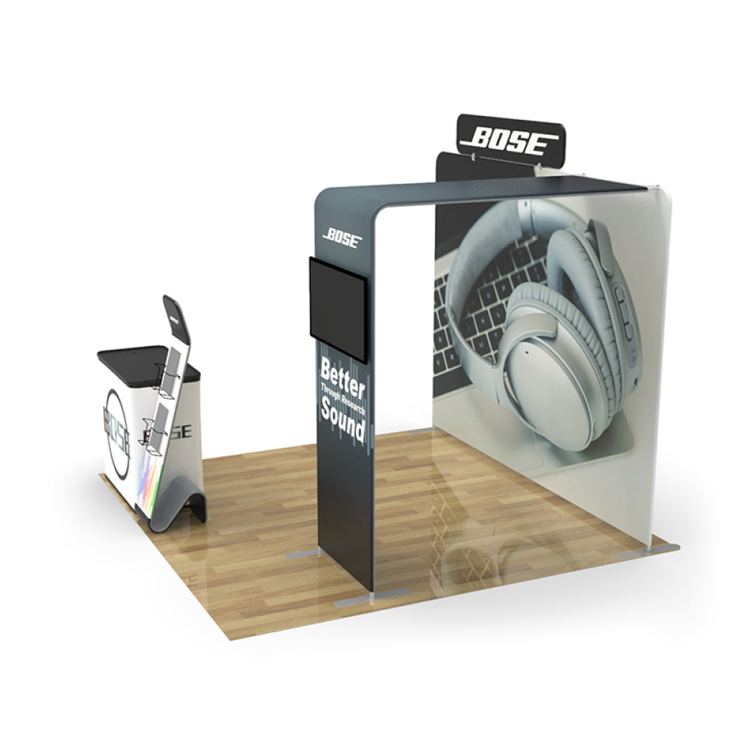 • Set includes backwalls, sidewalls, podium, literature stand and more