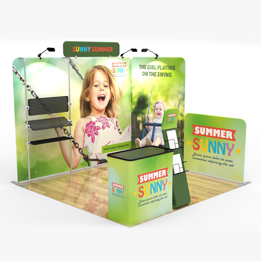 Looking to create an exhibit booth that will be the top attention-grabber at your next event? Attract attention and boost brand awareness with Print Next Day’s custom 10×10 ft booth designs. Our aluminum-framed booths are designed for easy transport and quick assembly, providing an efficient advertising solution for any occasion.