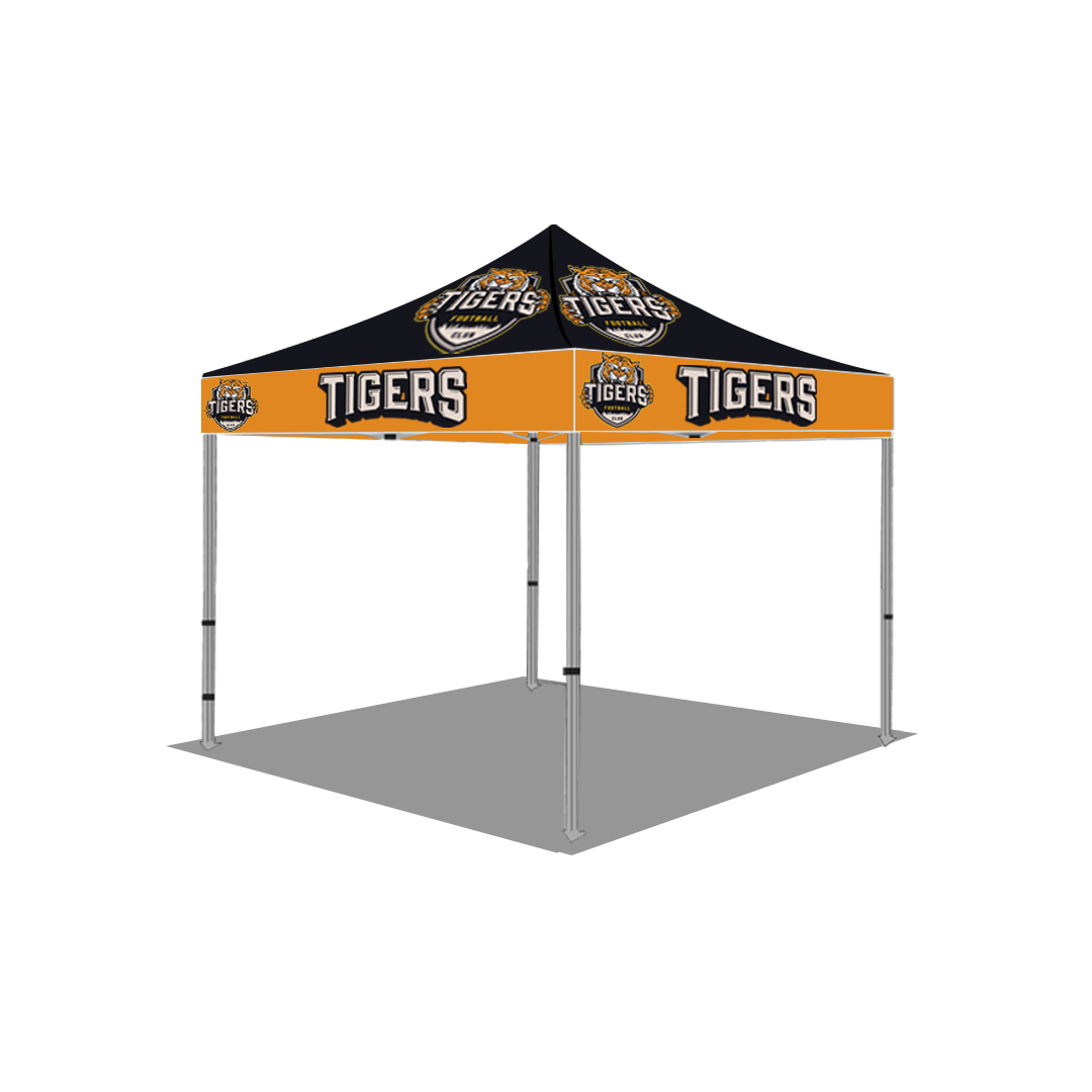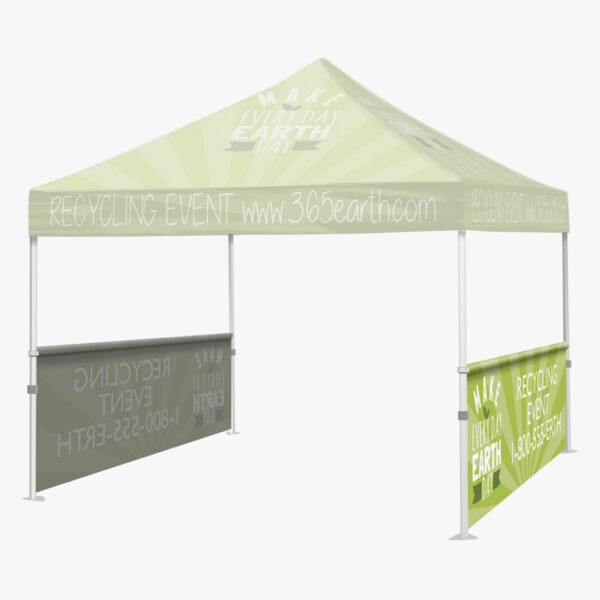 The 10×10 Event Tent is the next level in outdoor advertising. Achieve 360 degrees of branding with a custom full fabric dye sub canopy and hardware package.