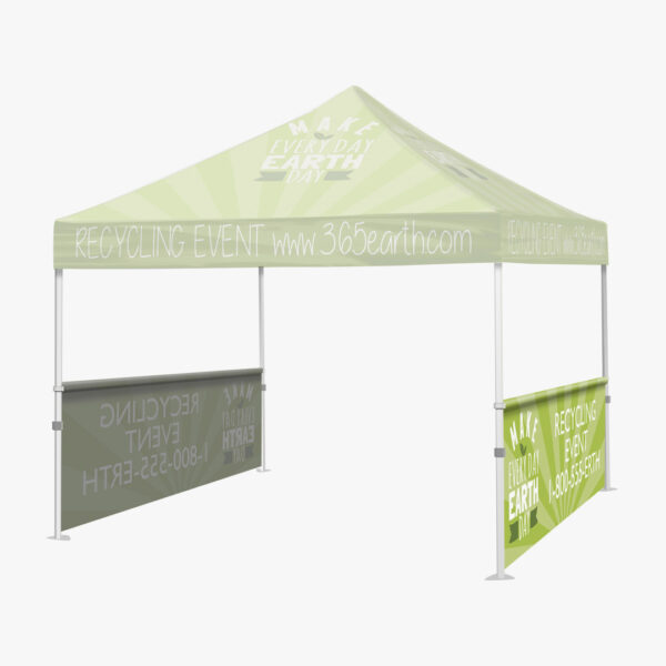 •Dye-sub printed half walls on 6oz weatherproof tent fabric •Half Walls have a top pole pocket for the half wall hardware and velcro loops for the sides •Single and Double sided available for Half Walls.