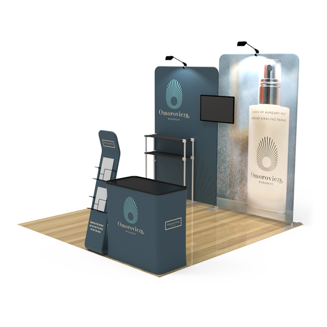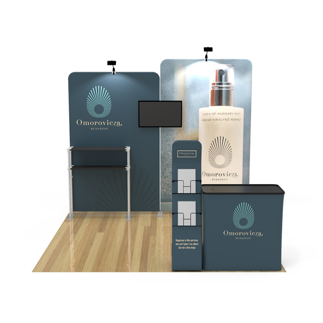 • Modular and fully immersive tension fabric tradeshow kit