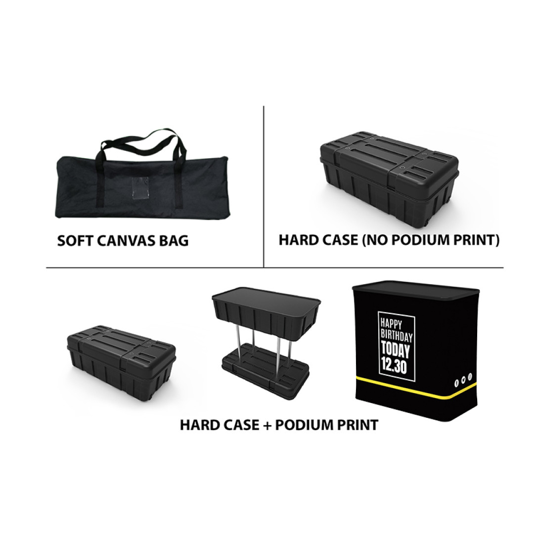 - 2 Hard Cases to Podiums with Custom Printed Graphics
