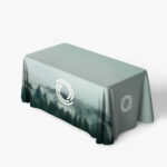 Our standard table cover is a great table topper for trade shows, exhibitions, and any presentations. Our table covers are dye sublimated and are 100% washable if they ever get dirty. This table cover is made from our 8.8 oz. polyester table fabric sized to fit a 48″ x 30″ x 30″ display table. The table cover is sewn with rounded corners and hang approximately 2″ above the floor. Complete your presentation with our simple and cost-effective table cover.