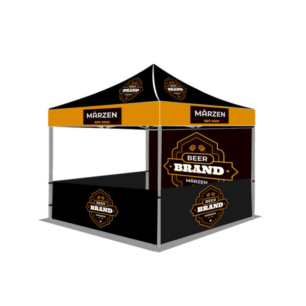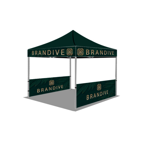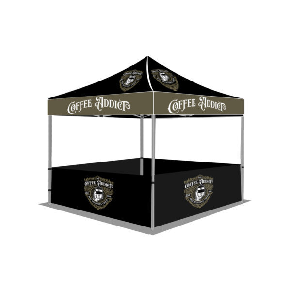 •10' x 10' full color custom tent •Heavy Duty aluminum hex frame •6 oz weatherproof tent fabric - dye sublimated •Optional printed walls and flags •Carry bag included - Premium wheeled bag available •Dye-sub printed walls on 6oz weatherproof tent fabric •Full Walls attach to event tent hardware via velcro loops •Half Walls have a top pole pocket for the half wall hardware and velcro loops for the sides •Single and Double sided available for Half Walls, Single sided only for Full Walls •Dye-sub printed walls on 6oz weatherproof tent fabric •Full Walls attach to event tent hardware via velcro loops •Half Walls have a top pole pocket for the half wall hardware and velcro loops for the sides •Single and Double sided available for Half Walls, Single sided only for Full Walls
