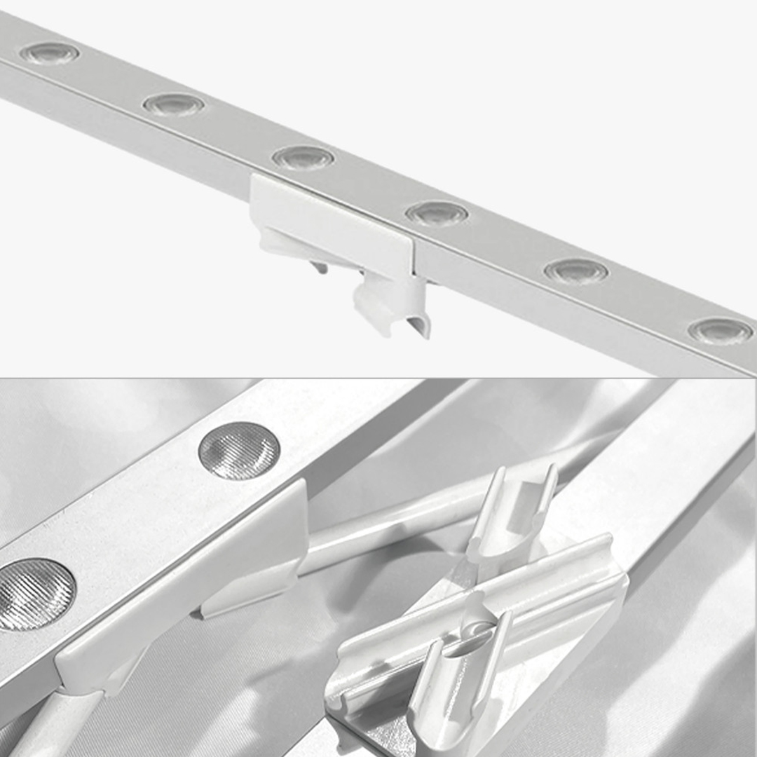 • Slim aluminum hardware for sleek appearance