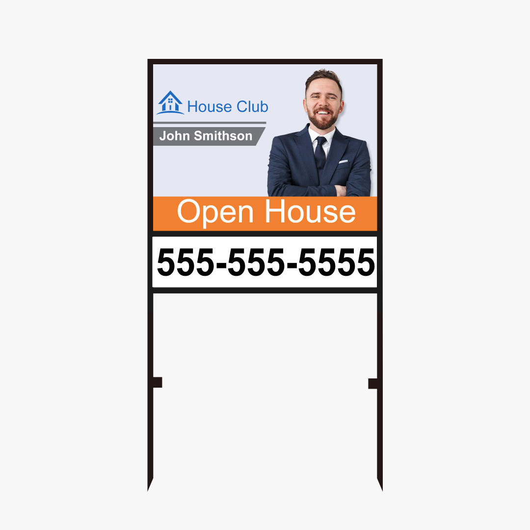 •Great for open house signs •24" x 18" 4mm corrugated plastic Sign •Full color UV print - Single or double sided •Durable for outdoor •Optional 10" x 30" steel h-stake