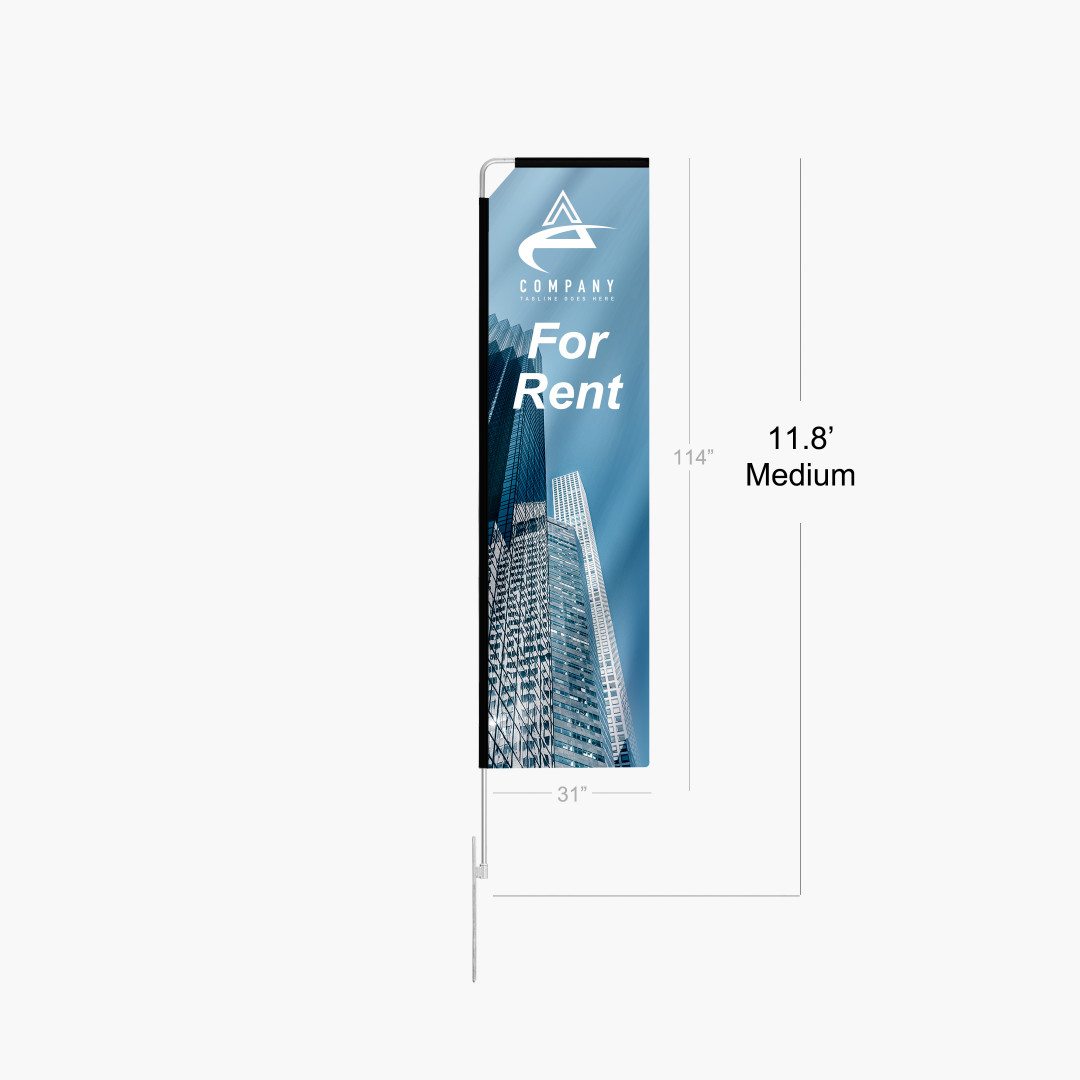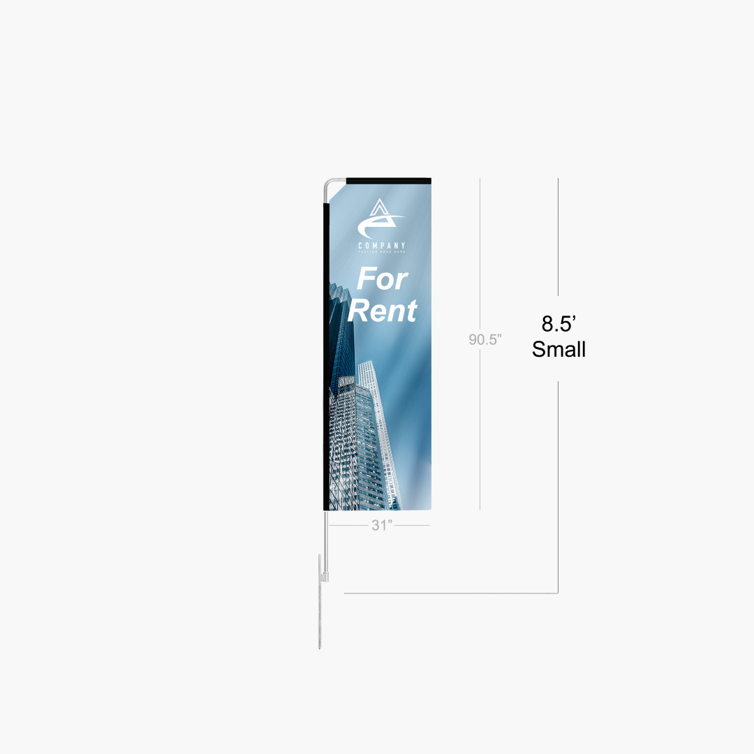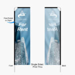 Rectangle flags offer a massive full color dye sublimated graphic, easy to design for shape and with optional base accessories they can be used indoors and outdoor.