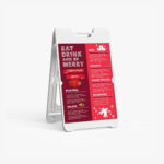 The SimpoSign® II is a lightweight counterpart to the Signicade and Signicade deluxe. The minimal hardware is designed for ultimate portability. The SimpoSign II includes a stabilizing bar and a hollow core where sand or water can be added to increase weight. This A-frame is built for quick change graphics, the molded plastic sandwich board has two recessed 22×28 inch graphic areas on the front and back. Our graphics are full-color UV Direct Printed Coroplast for a long-lasting durable matte print.