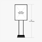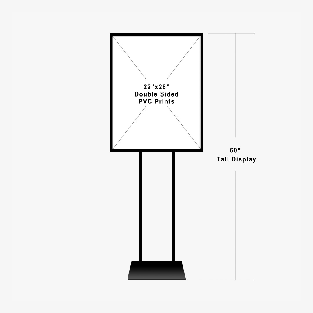 This floor standing poster stand accommodates a 22″ x 28″ drop in graphic and stands 60″ tall. This display is perfect for advertising for use up front or in the middle of your store or office. Our direct print double-sided PVC graphics easily drop in the frame for quick and easy setup. Product Features: